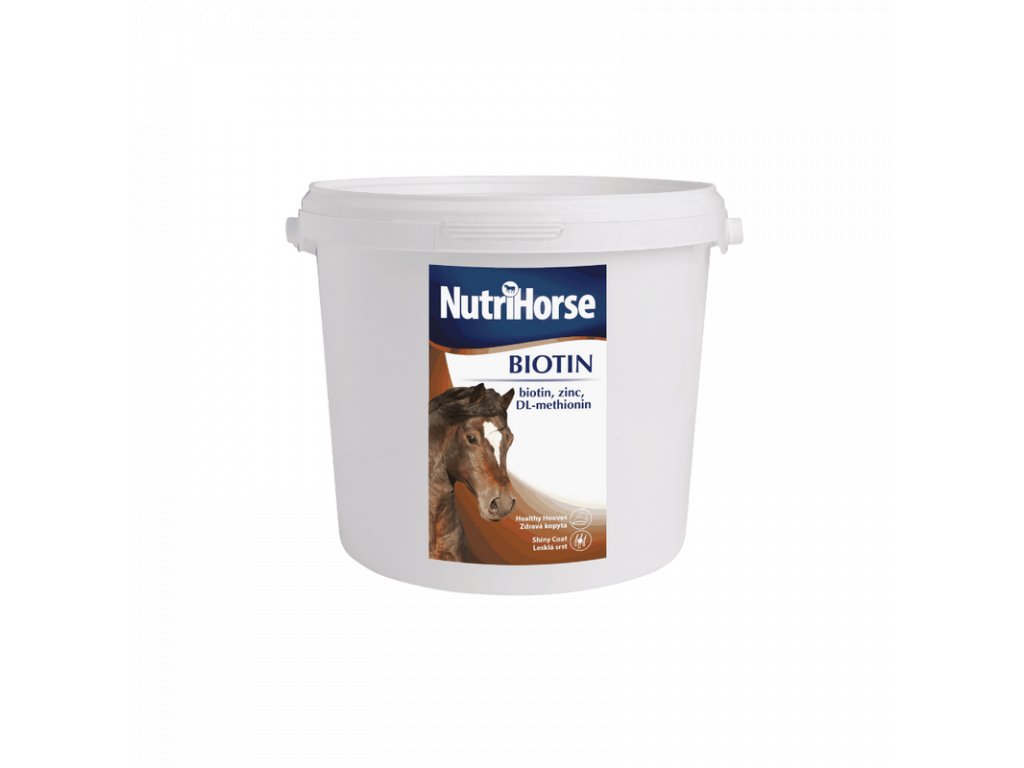 NutriHorse BIOTIN je určen k úhradě zvýšené potřeby živin pro správný vývoj kopyt. Zdravá kopyta jsou nesmírně důležitá pro každého koně a NutriHorse Biotin obsahuje základní trojkombinaci (biotin, DL-methionin, org. vázaný zinek), která zajištuje správný růst a vývoj struktury rohoviny kopyt. Spolu s dalšími složkami (vitamin B6, org. vázaná med a L-lysin) tvoří kompletní doplněk pro péči o kopyta vašeho koně.